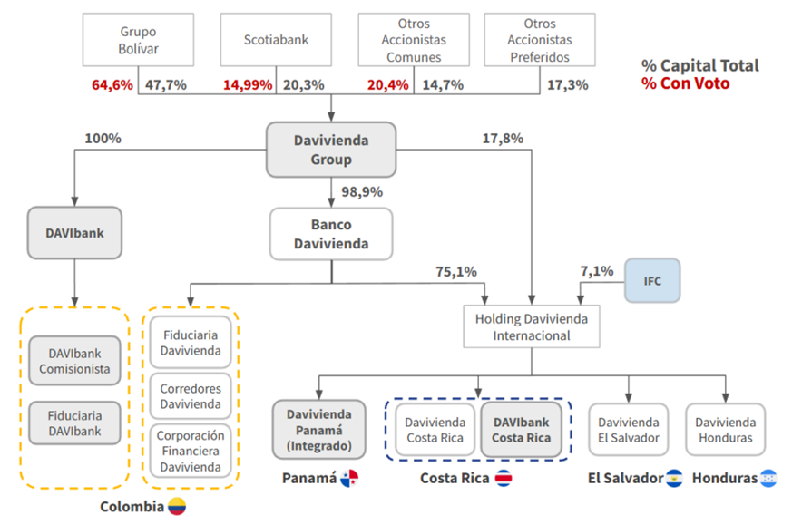 Con el cierre de la transacción, se materializa la nueva estructura corporativa de Davivienda Group como holding de todos los negocios de Davivienda, incluyendo las operaciones de BNS que fueron incorporadas, lo cual permite integrar en una sola estructura los distintos activos involucrados en la operación: