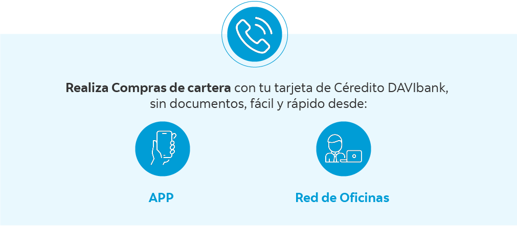 DAVIbank pertenece a Davivienda Group. Banco DAVIbank S.A. Establecimiento Bancario. En el marco de la integración de las operaciones de The Bank of Nova Scotia (“Scotiabank”) en Colombia con el Grupo Davivienda, Scotiabank ha otorgado una licencia de uso temporal de la marca “Scotiabank” (y sus derivados) al Grupo Davivienda y a (DAVIbank S.A.). DAVIbank S.A. es el titular y responsable por los productos y servicios ofrecidos. Campaña vigente del 01 al 31 de Enero de 2026. *Las tasas de compra de cartera aplicables en esta oferta, podrán variar mensualmente conforme a la tasa mensual vigente publicada en www.davibank.com – Tasas y Tarifas, así como también el porcentaje de descuento. Si tiene dudas sobre el cobro de seguro de vida deudor lo invitamos a consultar el siguiente link https://www.davibank.com/personas/seguros/vida-deudor. Todos los porcentajes de descuento informados corresponden a una referencia calculada respecto a la tasa Efectiva Anual aplicable para utilizaciones del mes de vigencia de la campaña. Las tasas pueden ser preferenciales desde 0.99%M.V equivalente 12.55% E.A. (descuento 48%) cumpliendo alguna de las siguientes condiciones: Apertura de cualquier seguro voluntario con una prima mensual promedio de $40.000 o Apertura de cuenta bolsillo con fondeo de $3.000.000 o apertura de cuenta de nómina.Por producto la tasa de compra de cartera es la siguiente: Infinite 1.15% M.V equivalente al 14.71% E.A (descuento 40%) , Signature 1.15% M.V equivalente al 14.71% E.A (descuento 40%), Black tasa de interés desde 1.15% M.V. equivalente al 14.71% E.A. (descuento 40%), Platinum tasa de interés desde 1.15% M.V. equivalente al 14.71% E.A. (descuento 40%), para las tarjetas Oro tasa de interés desde 1.15% M.V. equivalente al 14.71 E.A. (descuento 40%) , para las tarjetas Clásicas tasa de interés 1.15% M.V. equivalente al 14.71% E.A. (descuento 40%), Básicas tasa de interés 1.15% M.V. equivalente al 14.71% E.A. (descuento 40%) Y para las tarjetas One Light tasa de interés desde 1.8334% M.V. equivalente al 24.3606% E.A. Tasas sujetas a perfil de riesgo del cliente. El cliente puede elegir el plazo para la compra de cartera entre 12, 24, 36, 48 hasta 60 meses. La compra de cartera está sujeta al cupo disponible del tarjetahabiente. El tarjetahabiente titular podrá realizar compra de cartera de un tercero, el valor reportado por el titular será aplicado a la tarjeta de crédito del titular, el valor será abonado a la cuenta de ahorros o cuenta corriente que indique el titular, el tarjetahabiente será el responsable de pagar la obligación ante la otra entidad. No aplica para Tarjeta Cencosud Privada, Codensa, Energía de Pereira, Enertolima, ni Refinancia. Aplica para compras de cartera de tarjetas de crédito de otras entidades y se debe solicitar a través de App, Web o en la línea de atención Davibank de cada ciudad o sucursal del Banco y para las compras de cartera de libre inversión de otros bancos, se debe solicitar en una sucursal del Banco. La tarjeta de crédito debe encontrarse al día y sin ningún tipo de bloqueo. Sujeto a políticas de crédito de la entidad. La compra de cartera aplica únicamente para Tarjetas titulares, no aplica para Tarjetas Extendidas o afiliadas. No aplica para compras de cartera reversadas o no efectivas u otras transacciones diferentes a compras de cartera. El único lugar autorizado para ingresar datos personales es este link en la sección Ingresar, ingresa con total seguridad digitando directamente en tu navegador en este link. Esta campaña de Davibank es promocional e informativa. Por ninguna circunstancia Davibank solicitará a sus clientes ingresar datos bancarios por medio de un enlace (link) de internet. Para actualizar tus datos personales debes acercarte a una oficina de Davibank. El correo electrónico y celular podrán actualizarse a través de nuestra Línea de Atención de tu ciudad. Solo aplica para clientes a los que les fue enviada esta comunicación. Conoce tasas y tarifas aquí www.davibank.com/tasas-y-tarifas. En caso de no querer seguir recibiendo mensajes de texto de este tipo de parte de Davibank, consulte la política de tratamiento de la información publicada en la parte inferior de la página web de Scotibanak Colpatria, en donde encontrará los canales de atención disponibles para atender este tipo de solicitudes. Para mayor información sobre la liquidación intereses consulta aquí https://www.davibank.com/personas/tarjeta-de-credito/intereses. DAVIbank S.A. Establecimiento Bancario previa aceptación del cliente, generara cobro de comisión por cada desembolso de compra de cartera con tarjeta de credito. (Las tarifas se dan a conocer a través nuestra página web HYPERLINK http://www.davibank.com www.scotiabankcolpatria.com HYPERLINK http://www.scotiabankcolpatria.com www.davibank.com enlace Tasas y Tarifas.)