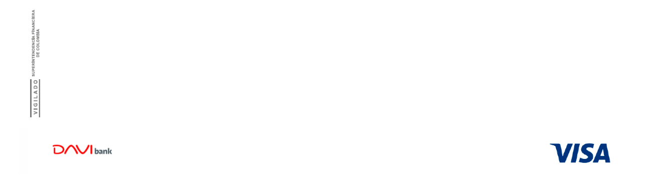 DAVIbank® es una marca registrada de Davivienda Group S.A. utilizada bajo licencia. Todos los derechos reservados 2025©. En el marco de la integración de las operaciones de The Bank of Nova Scotia (“Scotiabank”) en Colombia con el Grupo Davivienda, Scotiabank ha otorgado una licencia de uso temporal de la marca “Scotiabank” (y sus derivados) al Grupo Davivienda y a (DAVIbank S.A.). DAVIbank S.A. es el titular y responsable por los productos y servicios ofrecidos. Podrás ingresar a las salas VIP con tu tarjeta DAVIbank Visa Platinum One, Signature One, Infinite One y Lifemiles y Metal con tus accesos gratuitos, además debes descargar la aplicación de Visa Airport Companion® y registrarte con tu tarjeta de crédito DAVIbank Visa. El número de entradas a las salas VIP estarán definidas por cada tipo de producto y pueden ser consultadas en www.davibank.com/VAC las cuales aplican únicamente para el titular. A partir del 01 de septiembre el beneficio de acceso gratuito a Salas VIP no aplica para nuevas tarjetas de crédito Visa Platinum Lifemiles, Visa Signature Pricesmart y Visa Infinite Cencosud y a partir del 01 de noviembre de 2025 para la totalidad de tarjetas de estas marcas (activas antes del 01 de septiembre de 2025) A partir del 01 de Agosto de 2025, se evaluará que las tarjetas de crédito One Rewards Signature hayan realizado al menos una compra (No aplican transacciones de consolidación de obligaciones, avances en efectivo, transacciones en casinos, pago de impuestos, pagos de servicios públicos ni privados, seguros voluntarios, pagos PSE, ni seguro de vida de deudor) en los 30 días previos al ingreso a la sala VIP para otorgar el beneficio de entradas gratuitas y a partir del 01 de noviembre de 2025 para el resto de tarjetas de crédito del banco. Una vez utilices las entradas gratuitas en el año, podrás seguir ingresando a las salas del programa y el costo de cada entrada adicional para titular o invitados será cargado a tu Tarjeta de Crédito Visa inscrita en la aplicación Visa Airport Companion® y las tarifas se encuentran publicadas en www.visa.com.co. Cada entrada de invitado será como una entrada adicional y será cobrada a tu Tarjeta de Crédito Visa inscrita en la aplicación Visa Airport Companion® y las tarifas se encuentran publicadas en www.visa.com.co. La tasa de conversión es la TRM del día en que se realiza el cobro en la tarjeta de crédito. La tarjeta de crédito Visa no es transferible y debe estar vigente en el momento del uso. La tarjeta no podrá ser utilizada por ninguna otra persona más que por el titular. Todas las salas que participan son de propiedad y operación de terceras organizaciones, el tarjetahabiente y sus invitados deben acatar las reglas y políticas de cada sala que participa, el acceso puede ser restringido y será totalmente a discreción de cada operador. *Sujeto a condiciones del programa, para consultar salas, horarios y ofertas disponibles descarga la aplicación de Visa Airport Companion (disponible en Android y iOS). El proveedor de los beneficios y servicios ofrecidos en el programa Visa Airport Companion es DragonPass. Estos beneficios y servicios están disponibles sólo para titulares de productos Visa Infinite, Visa Signature y Visa Platinum emitidos en países de América Latina (excluyendo Venezuela) y el Caribe, que descarguen la aplicación móvil “Visa Airport Companion” (la “Aplicación”) y se registren en dicha Aplicación, aceptando sus términos y condiciones. Visa no es el proveedor de los beneficios y servicios. DragonPass mantiene la responsabilidad exclusiva de los servicios y de la Aplicación. Para términos, condiciones y restricciones adicionales, por favor remítase a la información contenida en la Aplicación. El botón de descarga de la app aplica en Móviles.
