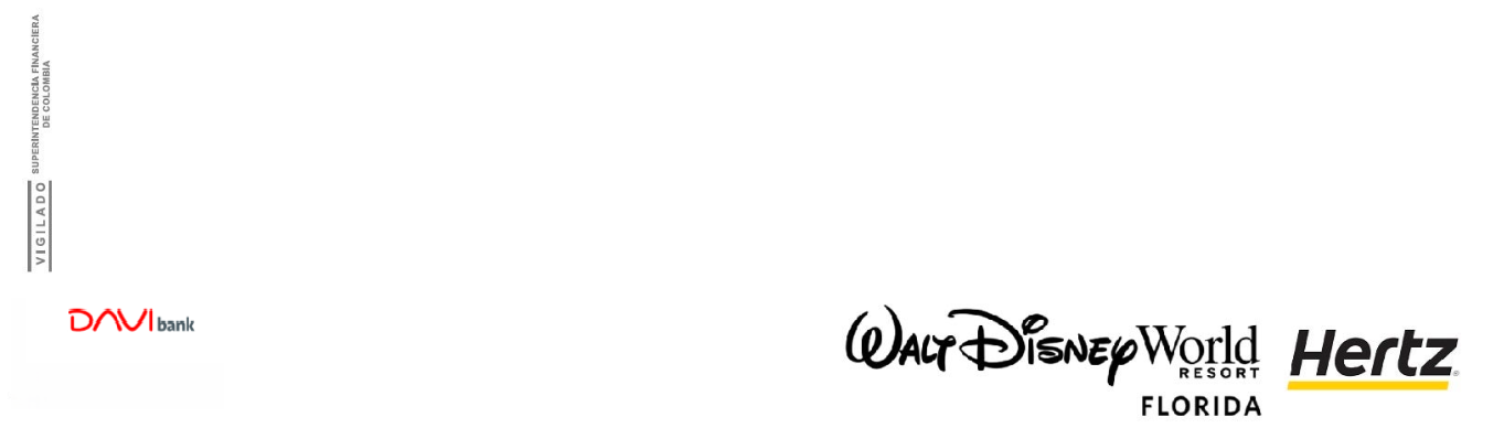 ®Marca registrada de Davivienda Group, utilizada bajo licencia DAVIbank. DAVIbank Establecimiento Bancario. Consulta como usar y términos y condiciones de los bonos en: https://onerewards.com.co/micuenta_tyc.php, consulta el reglamento completo del programa One Rewards en https://www.davibank.com/personas/tarjetas-de-credito/condiciones-acumulacion-puntos y en https://www.davibank.com/personas/tarjetas-de-credito/condiciones-redencion-puntos. La plataforma de viajes One Rewards es operado por DestinoJet, consulta términos y condiciones ingresando a la sección viajes One Rewards, con tu usuario y contraseña a través de tu app o banca virtual, las promociones de descuento de primera compra están sujetas a condiciones que puedes consultar en: https://res.cloudinary.com/ultragroup/image/upload/v1752617093/gn4v0bs8blouwjnva78n.pdf Dando cumplimiento al Literal E del artículo 631 del Estatuto Tributario, el Banco DAVIbank informará a la Dirección de Impuestos y Aduanas Nacionales DIAN, el valor en dinero que se entregue a cada cliente por la redención de puntos.
