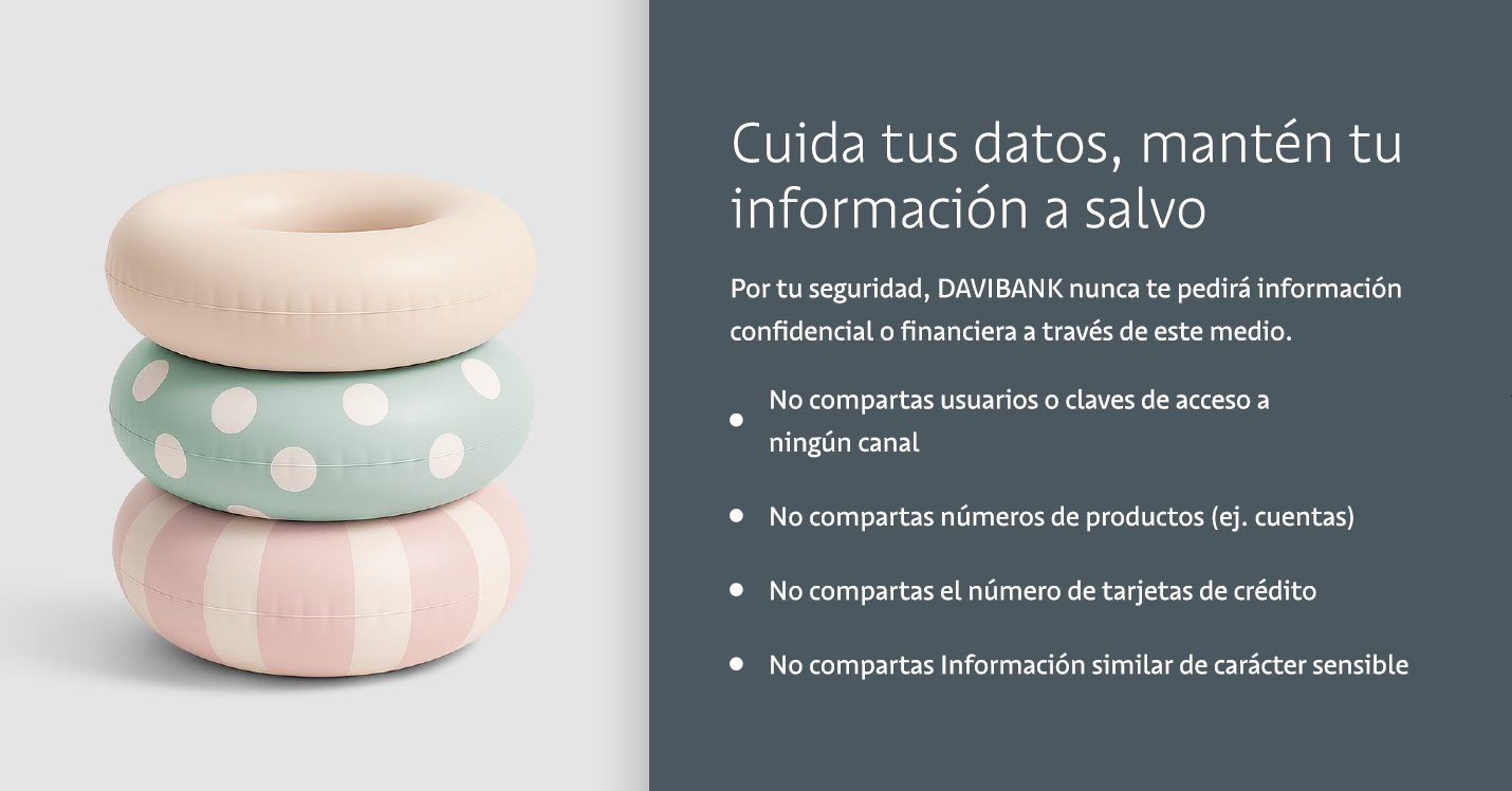 1DAVIbank Comisionista (Colombia) S.A. Sociedad Comisionista de Bolsa que tienen una oferta de productos y servicios encaminados a la gestión patrimonial, y que tienen un servicio diferencial en los canales de cada entidad.DAVIbank S.A. establecimiento bancario promociona los productos y servicios asociados a inversiones en el mercado de valores en desarrollo de contrato de uso de red celebrado con DAVIbank Comisionista S.A. Sociedad Comisionista de Bolsa, hoy vigente. DAVIbank no actúa como sociedad Comisionista de Bolsa. Las inversiones no son depósitos bancarios, no poseen ningún seguro de depósito. Las inversiones no están garantizadas por DAVIbank Securities (Colombia) S.A. Sociedad Comisionista de Bolsa, Scotiabank Colpatria S.A., ni ninguna de sus afiliadas a menos que el producto así lo especifique en forma expresa. Los Productos de inversión son distribuidos por DAVIbank Comisionista (Colombia) S.A. Sociedad Comisionista de Bolsa, quien asume exclusivamente la responsabilidad del cumplimiento de las obligaciones contractuales frente al consumidor financiero. Los productos de inversión están sujetos a riesgos de inversión, incluyendo posibles pérdidas de su capital invertido. Los resultados pasados no representan resultados futuros, dado que los precios pueden subir o bajar. Si desea discutir sobre sus estrategias potenciales para reducir el riesgo de una posición concentrada, contacte a su Banker.